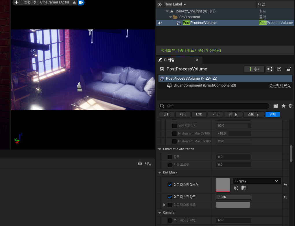 - 포그 인스캐터링 컬러 : 포그 컬러 변경