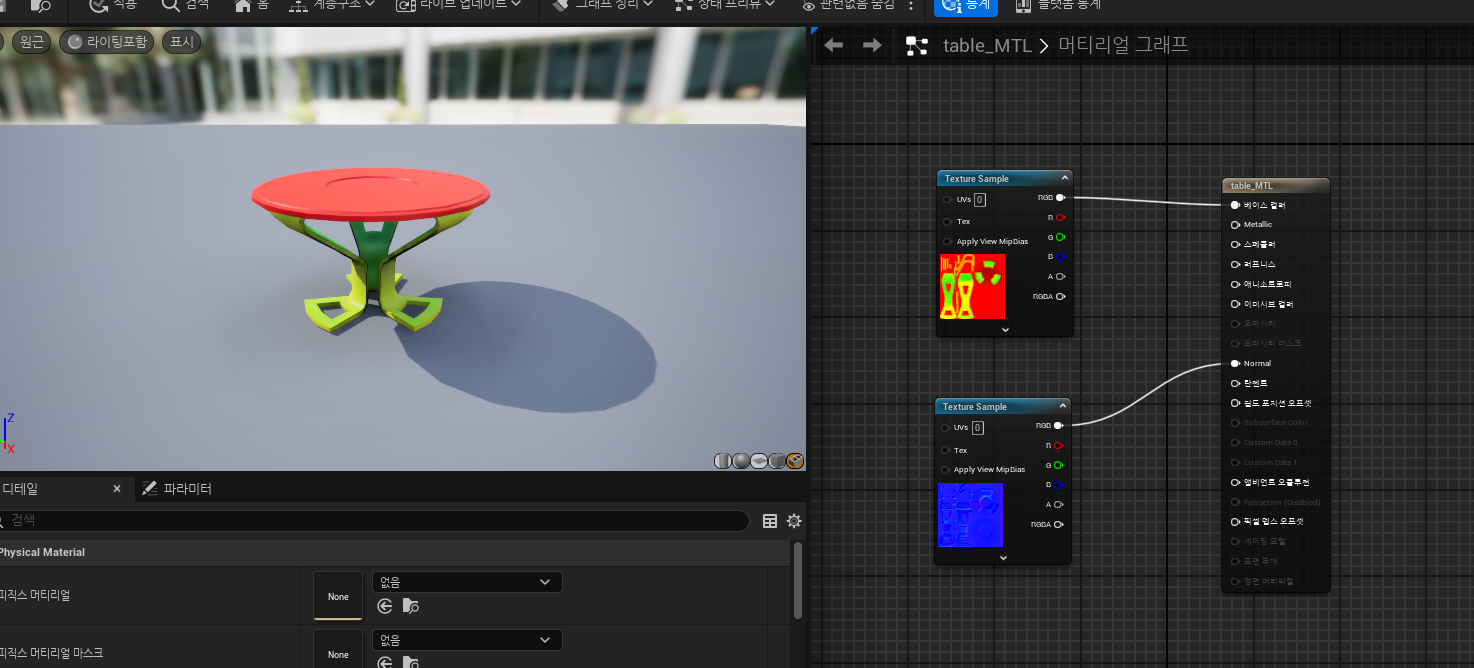 과제물 제작 : 수업 내용 응용하여 테이블에 메터리얼 넣기
