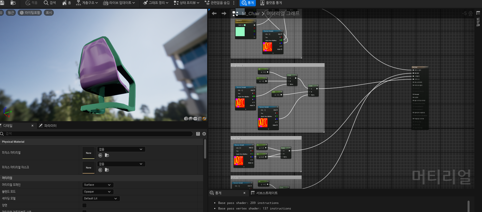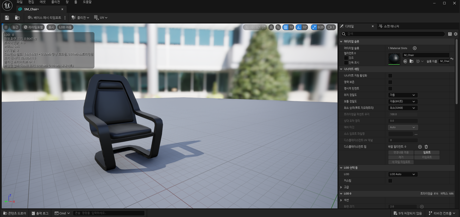 - SM_chair 모델링>M_chair 메터리얼로 들어감