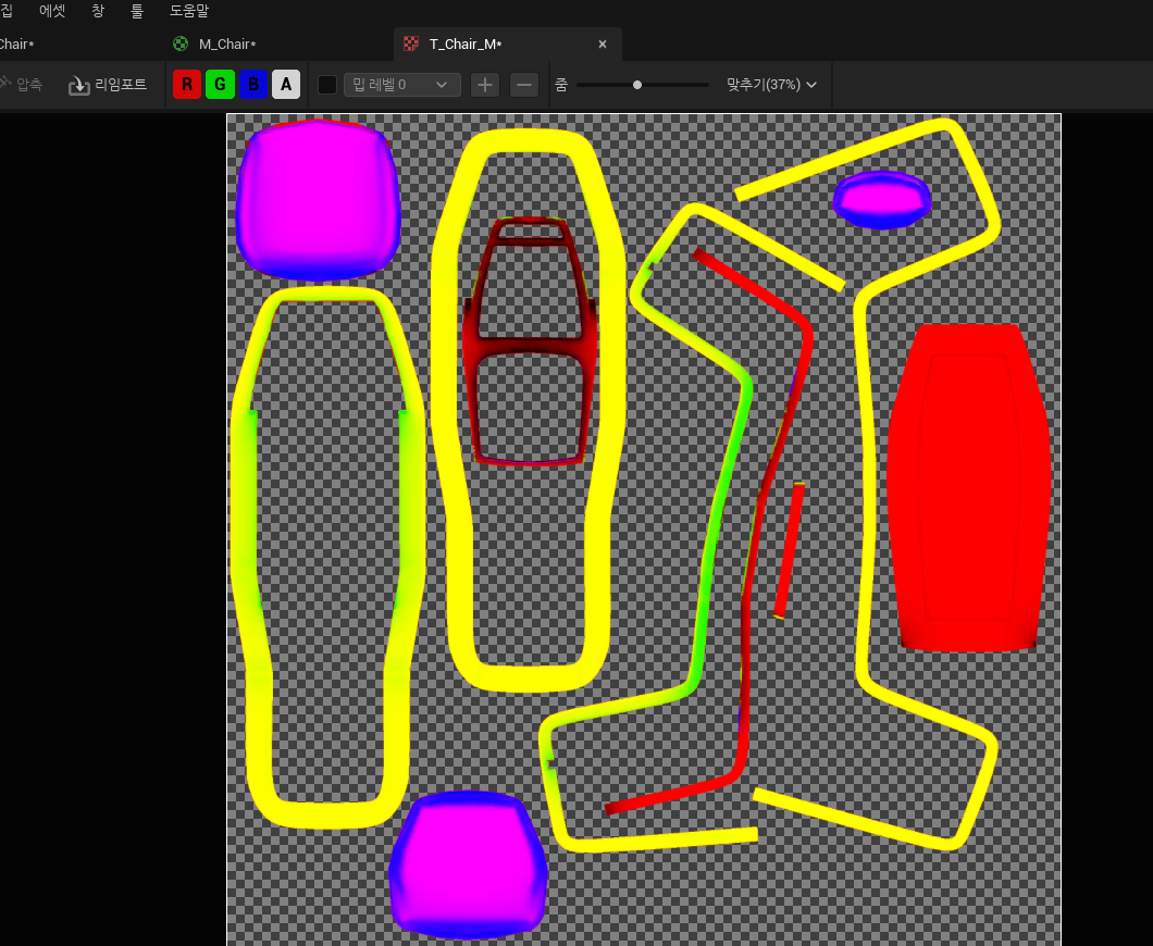 - 텍스쳐 샘플에서 이미지를 더블 클릭하면 들어가서 각 채널을 확인할 수 있음
