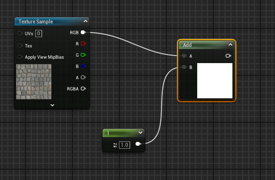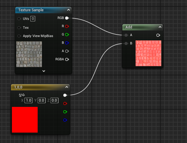 - add 노드를 활용해서 1값을 집어넣으면 하얘진다. 그 밑의 숫자도 0이상이면 명도가 올라간다.