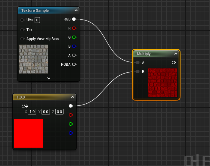 - 3vector 이용해서 multiply를 alpha값에 입력하면 빨간색과 초록색이 깜빡이는 효과를 만들 수 있음.