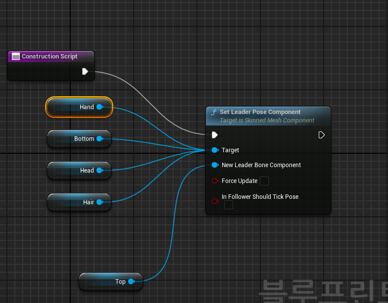 - 브런치 노드를 활용해서 해당 이미지처럼 만든뒤 셋 리더 포즈 컴포넌트 다음으로 연결해준다.