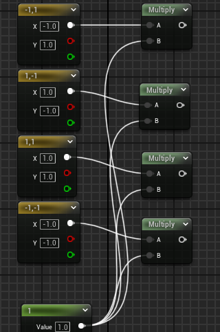 - 2벡터를 4개 꺼내서 값을 저렇게 설정해주고 멀티플라이에 각각 연결