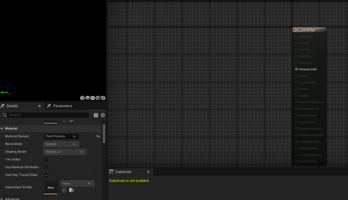 - 포스트프로세스에 메터리얼을 집어넣어서 툰 쉐이딩을 하도록 한다. 메터리얼 도메인을 포스트 프로세스로 변경