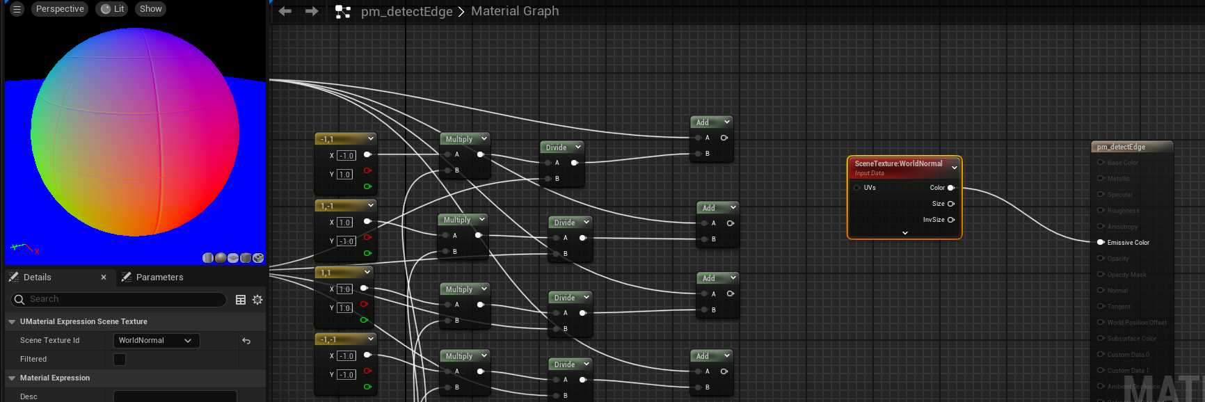 - 이런식으로 월드 노말값을 받아 테두리가 따진 것을 볼 수 있다. 이를 아웃라인 컬러로 변경