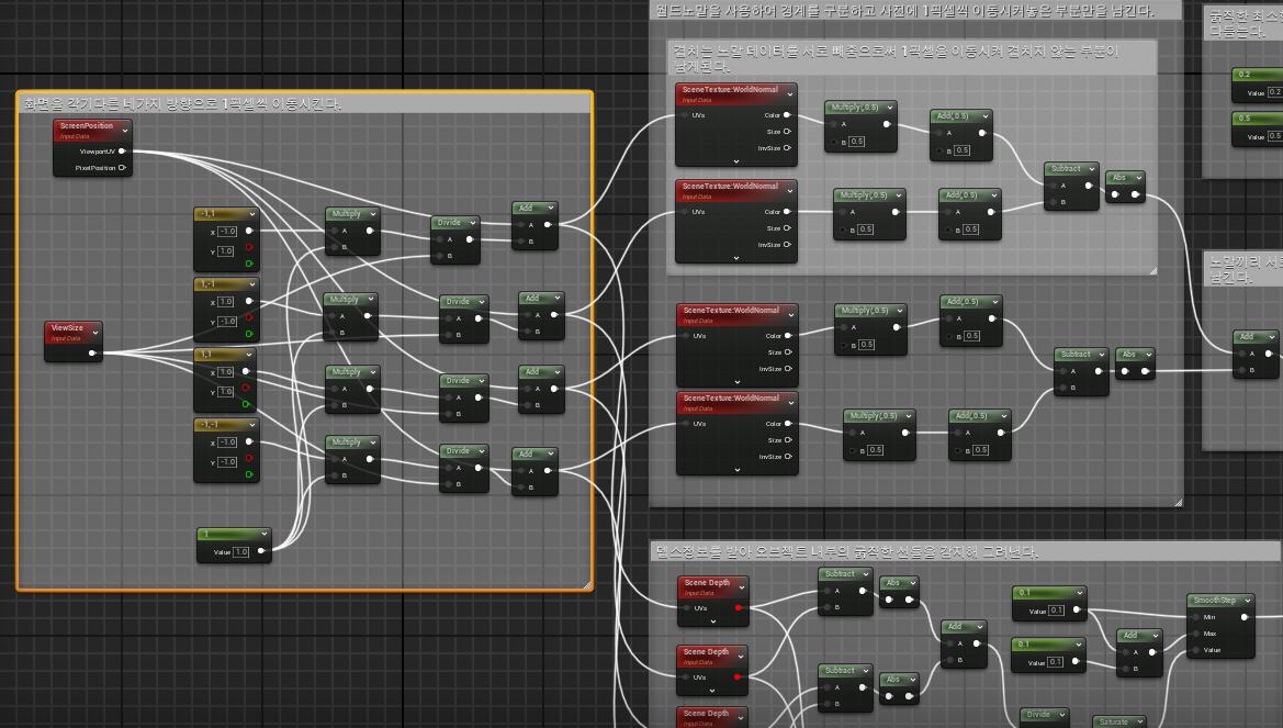 - 스크린 포지션과 뷰 사이즈 노드 연결